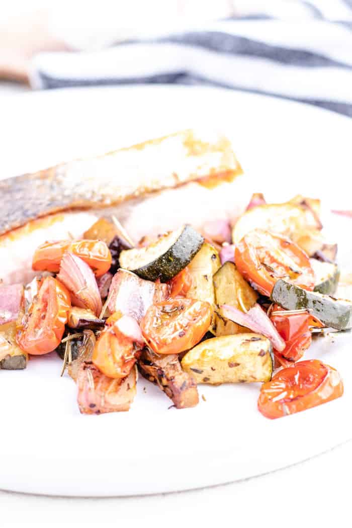 Be sure not to overcrowd the veggies on the sheet pan or they won’t brown. If you’re cooking all the veggies at once, it’s better to use two sheet pans if you need to.